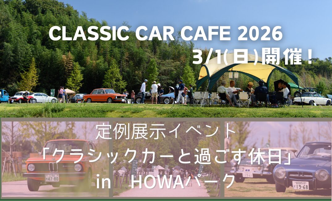 - 三重県津市のHOWAパークで、2026年3月1日に開催されるクラシックカー展示交流イベントです。1970年代以前の名車を中心に展示され、オーナーと来場者が直接交流できる機会が設けられます。クルマの開発背景や時代の物語、愛車に込められた想いなどが語られる、あたたかな雰囲気の交流イベントとなる予定です。クラシックカーに詳しい方だけでなく、ご家族連れや初めてクラシックカーを見る方にも楽しんでいただける内容となっています。会場内はどなたでも無料でご覧いただけ、お気に入りの一台に“推し”の一票を投じられる人気投票企画も実施されます。また、クラシックカーと一緒に楽しめるゆるっとフリマも開催され、スタッフセレクトのカーグッズやミニカーの販売、展示参加者によるフリマ出店も可能です。緑豊かな芝生が広がるHOWAパークの自然ロケーションで、クラシックカーと自然が織りなす特別な一枚を撮影することもできます。クラシックカーをきっかけに、新たな出会いや交流が生まれる、笑顔が広がる一日となるでしょう。