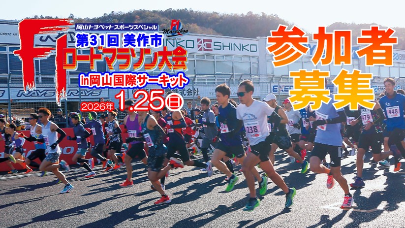 - 岡山県美作市、岡山国際サーキットで開催される「第32回美作市F1ロードマラソン大会」は、かつてF1レースが行われたサーキットコースを走る、全国でも珍しいマラソン大会です。普段走ることのできないサーキット場を、F1マシンが走ったコースを楽しみながら走ることができます。種目はハーフ、10キロメートル、3.4キロメートル、1.7キロメートルがあり、幅広い層が参加可能です。ゲストランナーとして女子サッカーチーム「岡山湯郷Belle」の選手などが招かれる予定です。参加者にはタオルが参加賞として用意されます。また、豚汁や抽選会といった参加者へのサービスも提供されます。悪天候の場合、大会の中止、コース変更、距離変更の可能性があります。主催者の責によらない事由で大会が中止となった場合、参加料・手数料の返金は一切行われません。申し込み後のキャンセル及び不参加の場合も返金はありません。F1コース一般男女の部での上位成績者各3名は、2026年11月に開催予定のおかやまマラソンに招待選手として推薦されます。美作市内在住・在学の中学生以下の方は、参加料割引があり、大会事務局に直接申し込む必要があります。