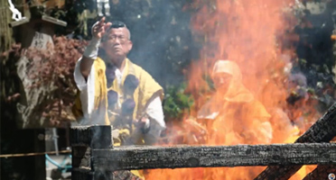 - 熊本県阿蘇市にある西巌殿寺にて、毎年4月13日に開催される伝統行事「阿蘇山観音まつり」は、一年間の無病息災を祈願する祭典です。山伏姿の行者たちによる読経から始まり、護摩木が炎に投じられる採灯大護摩祈祷が行われます。その後、行者たちが裸足で熱い炭の上を歩き渡る「火渡り大荒行」は、祭りのクライマックスです。一般参拝者も参加可能で、心を落ち着かせて歩くことが無事に渡るコツとされています。また、大きな釜で煮立てた熱湯にササを浸し、勢いよく振りまく「湯立大荒行」では、その湯を浴びると一年間無病息災で過ごせると伝えられています。この祭りは明治時代に始まり、西南戦争で亡くなった人々を供養する招魂祭が起源となっています。迫力ある炎と湯しぶき、そして厳かな祈りの時間が春の阿蘇で繰り広げられます。