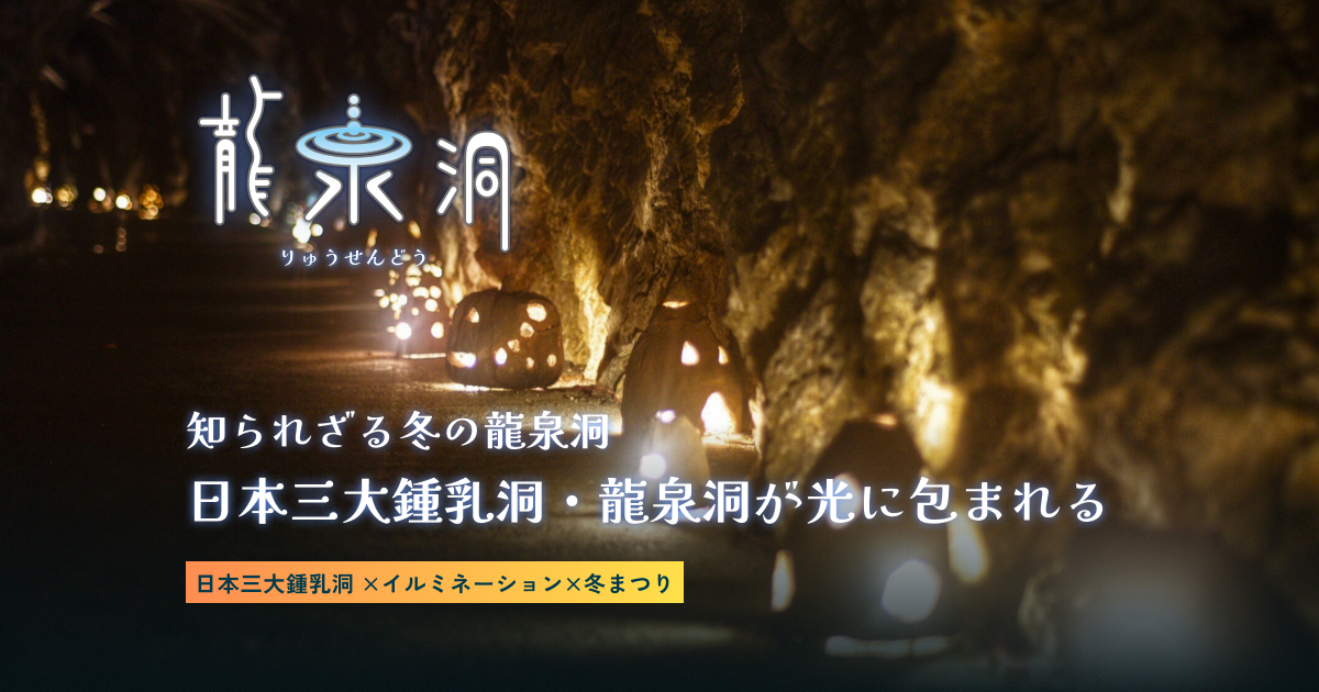 - 日本三大鍾乳洞である龍泉洞で開催される冬季限定イベント「龍泉洞冬まつり」は、洞内を幻想的な光でライトアップし、特別な体験を提供します。青く澄んだ地底湖や照らされた岩肌、静寂にゆらぐランタン演出など、歩くたびに景色が変わる神秘的な空間を楽しむことができます。洞外では、イルミネーションが彩る冬まつりの賑わいが展開され、岩泉ならではの屋台が出店し、温かいグルメやスイーツが味わえます。岩泉炭鉱ホルモン鍋や短角牛テールスープ、安家栗まんじゅうなどが楽しめます。子ども向けのエリアも充実しており、ボールプールやプラレール、テレビゲームなどが用意され、寒さを凌ぎながら遊ぶことができます。洞内は手すり付きで滑りにくい床面が整備されており、小さなお子様連れでも安心して見学できます。冬の澄んだ空気の中で、光と食、遊びが融合した非日常的な体験ができます。