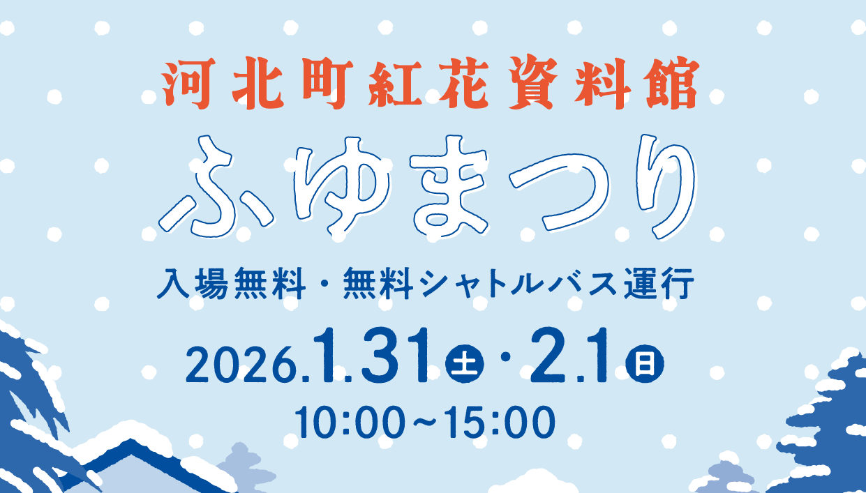 - 山形県河北町で開催される「紅花資料館ふゆまつり」は、2026年1月31日(土)と2月1日(日)の2日間、河北町紅花資料館を会場に開催されます。今年の目玉は、山形県おもてなし局長の「きてけろくん」とモンテディオ山形の「ディーオくん」が登場するマスコットキャラクターじゃんけん大会です。1月31日(土)にはきてけろくん、2月1日(日)にはディーオくんがそれぞれ10:30からじゃんけん大会に参加します。イベントでは、チューブすべりやかまくらが楽しめる「べにのすけスノーパーク」や、雪の中に隠された宝を探す「雪の中の宝さがし」といった雪遊びコンテンツが充実しています。また、特別体験プログラムとして、おひなさま変身体験(各日500円)や、1月31日(土)はスノードーム作り、2月1日(日)はバスボム作りといった工作ワークショップ(各日500円)も開催されます。山形の冬の味覚である寒だら汁の振る舞い(各日限定50杯、なくなり次第販売)もあり、温かい汁で冷えた体を癒すことができます。さらに、イベントに先駆けて1月24日(土)から1月30日(金)までの期間は、17:00から19:00まで夜のライトアップも実施され、イルミネーションや竹あかりで彩られた幻想的な資料館を楽しむことができます。会場へはサハトべに花からの無料シャトルバスも運行され、アクセスも便利です。当日は資料館入館料も無料となります。