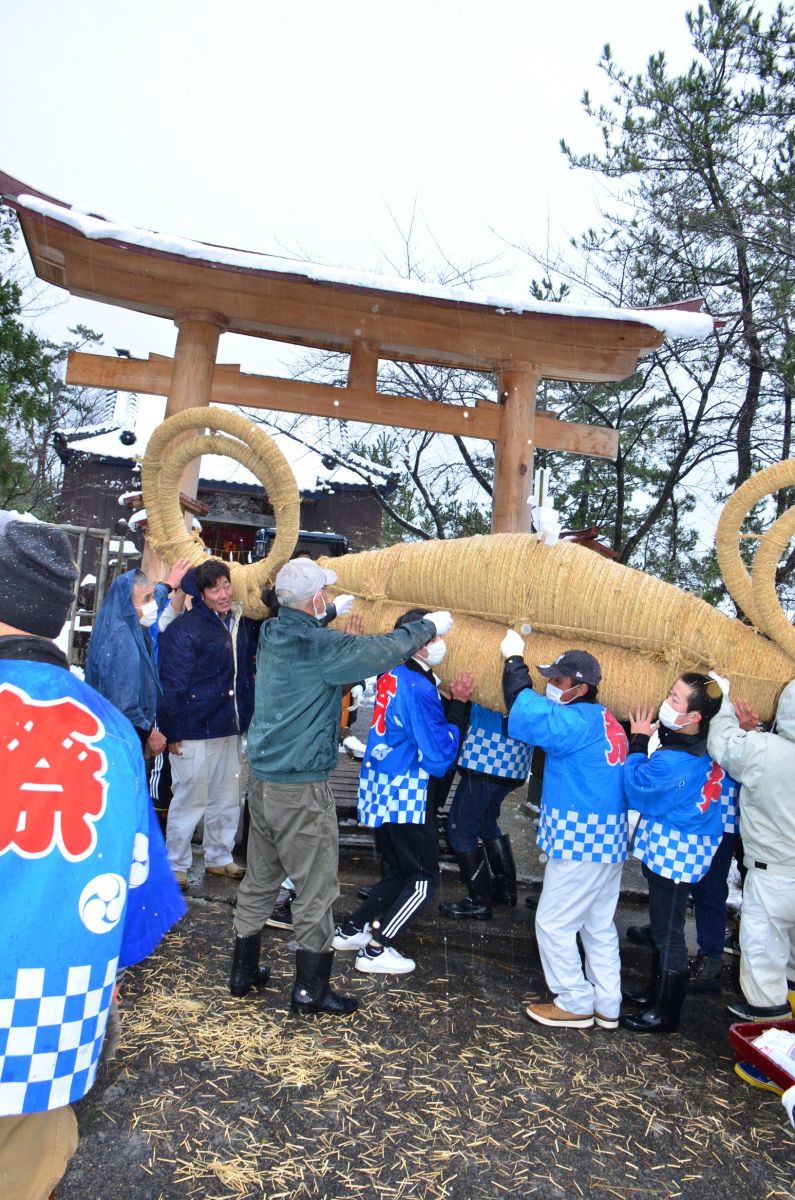 - 新潟県聖籠町亀塚地区で約300年以上前から受け継がれてきた伝統行事で、町指定無形文化財(民俗文化財)に指定されている。享保4年(1719年)頃、集落の神社が火事で全焼したことを機に、厄を祓い、無病息災、五穀豊穣を祈願する目的で始まった。朝から地域住民が重さ約300kg、長さ約4メートルの大きなしめ縄を製作し、これを練馬(ねりば)と呼ぶ。従来は数え年19歳の若者たちがこのしめ縄を担いで集落内を練り歩いた後、諏訪神社に奉納していたが、2021年からはコロナ対策としてトラックに載せて集落を回る新たな試みを取り入れ、次世代への継承を図っている。集落内を練り回った後、15時頃に神社へ奉納される様子は、地域の結束と伝統の息吹を感じさせる見どころ。無料で参加可能で、JR白新線佐々木駅や聖籠新発田ICからのアクセスも良く、地元ならではの素朴で力強い魅力が詰まったイベントである。